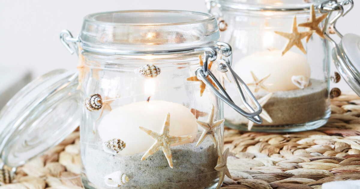 Réalisez des bougies en utilisant des contenants récupérés tels que des verres ou des coquilles vides. Ajoutez quelques gouttes d'huiles essentielles au parfum marin et disposez-les sur votre table ou votre rebord de fenêtre pour une ambiance relaxante.