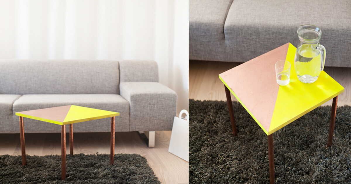 - Finition : fixez le dessus en bois aux pieds en cuivre avec l'adhésif approprié et laissez sécher.