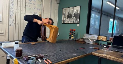 Eliot Lowyck, à peine âgé de 25 ans, est sur le point de terminer les dernières coutures d'un sac à main dans son atelier. Célèbre dans la région pour sa maroquinerie, il participe à ces journées avec l'espoir de transmettre sa passion. "Ces métiers représentent une véritable valeur. Travailler dans son propre atelier, c'est aussi enrichissant que de collaborer avec de grandes marques de luxe; chaque métier a son importance", affirme Eliot.